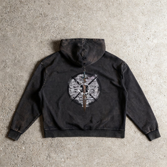 "Rannis Dark Moon" Embroidered Washed Street Hoodie